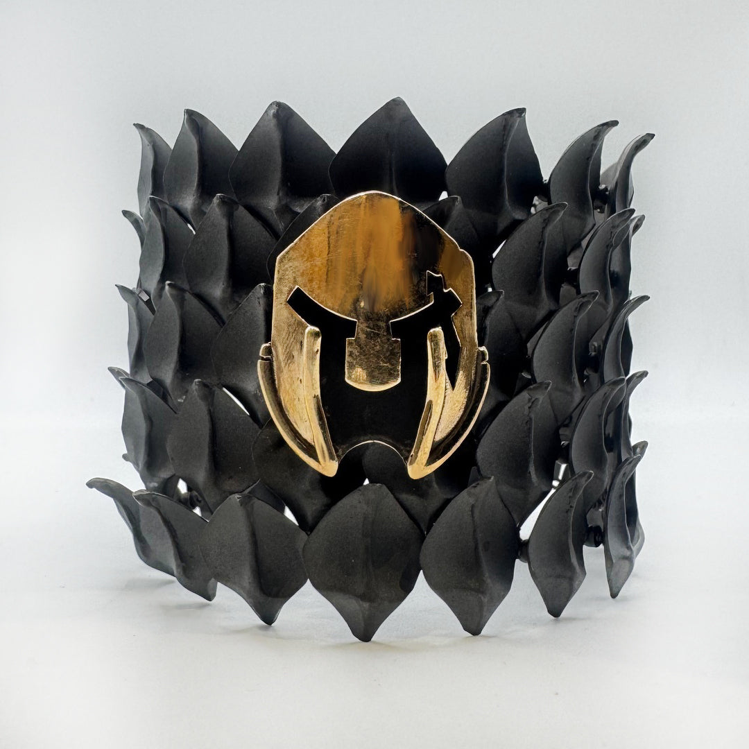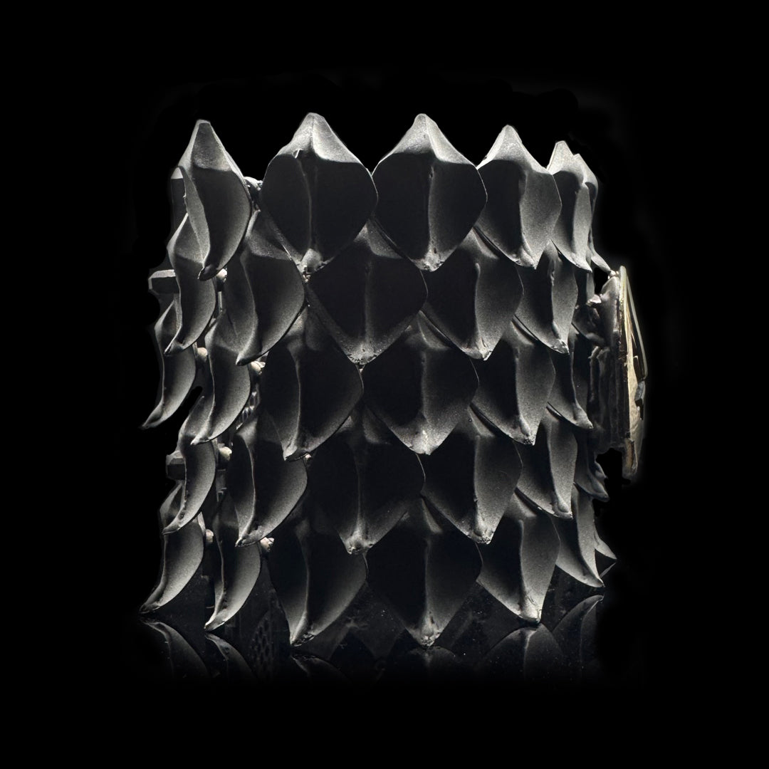 Il Bracciale Armatura – Scaglie di Drago nasce per chi vuole portare al polso un segno di potere primordiale: una superficie viva, scolpita cn scaglie snodate come un'antica armatura del medioevo ,  con un carattere oscuro e nobile allo stesso tempo.