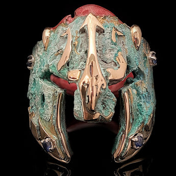 Frammento perduto degli abissi, l’Anello Relic Poseidon sembra emergere direttamente da un antico relitto consacrato al Dio del Mare. Il bronzo ossidato racconta il passare dei secoli, mentre lo smalto e le pietre incastonate richiamano la luce misteriosa delle profondità oceaniche.