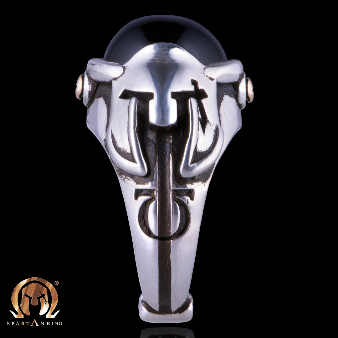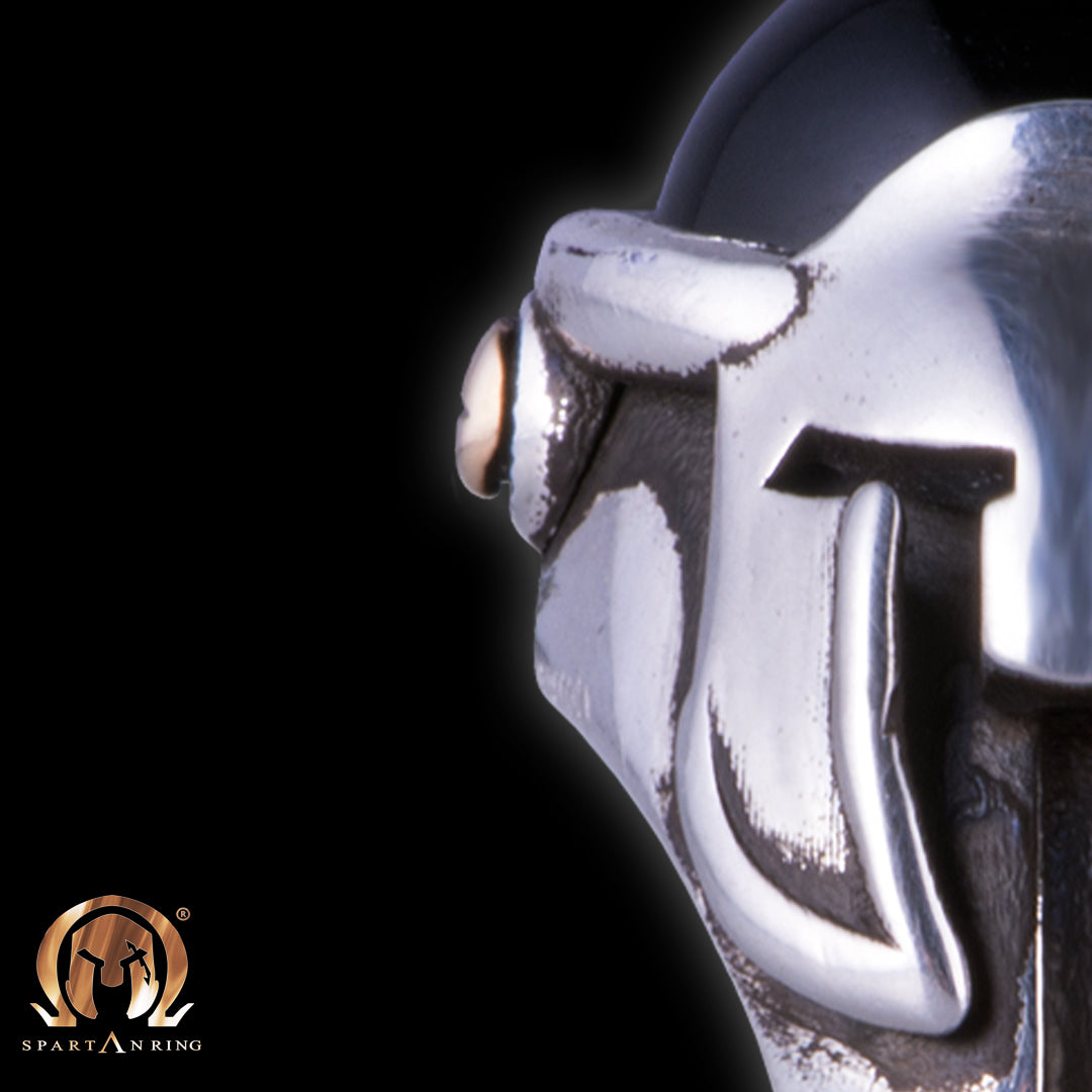 L'Oracolo è un anello di eleganza senza eguali. Il suo design unico al mondo conferisce Forza ma allo stesso tempo attenzione ad un outfit più esclusivo. Il fantastico design dello Spartan Ring crea fantasia per ricercare sempre più uno spirito nel mondo dell'alta gioielleria. Questo design rispecchia appieno il potere dell'esclusività, una parola fondamentale per questo brand. Questo gioiello in argento 925% e pietra Onice con viti in bronzo riflette una bellezza senza paragoni.