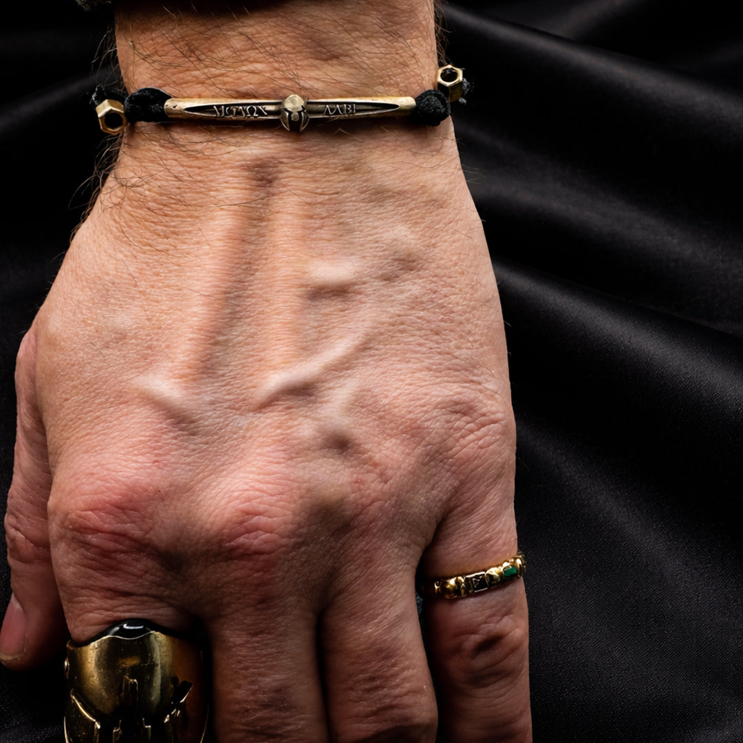 La scritta antica del guerriero e l’elmo Spartano non sono decorazioni: sono un messaggio.