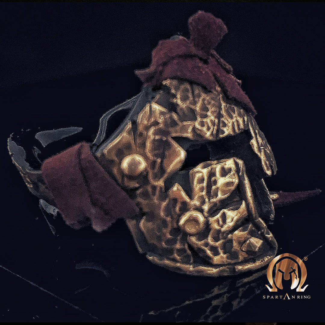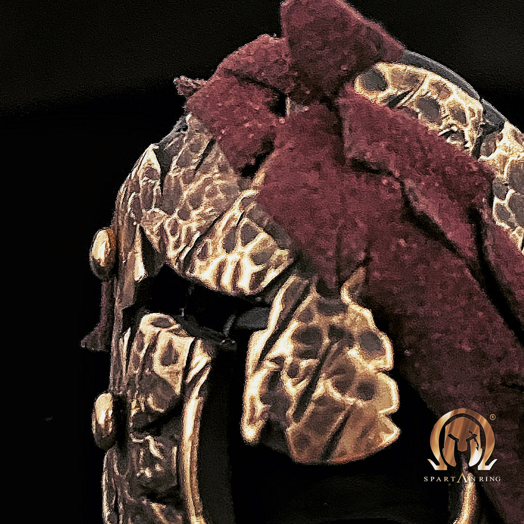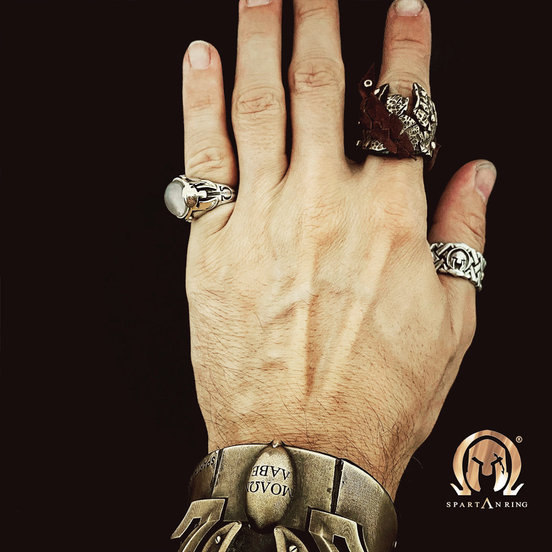 una lavorazione superiore di puro artigianato Made in Italy combinando metalli e pelle, stoffe. Un anello che viene prodotto in piccole quantità con tempi di attesa dai 30/40 giorni. La superficie completamente intagliata e martellata a martello riflette l'antico lavoro svolto sulle armature dell'epoca e la lavorazione del Old Spartan, questa volta svolto sulla base del Berserker.