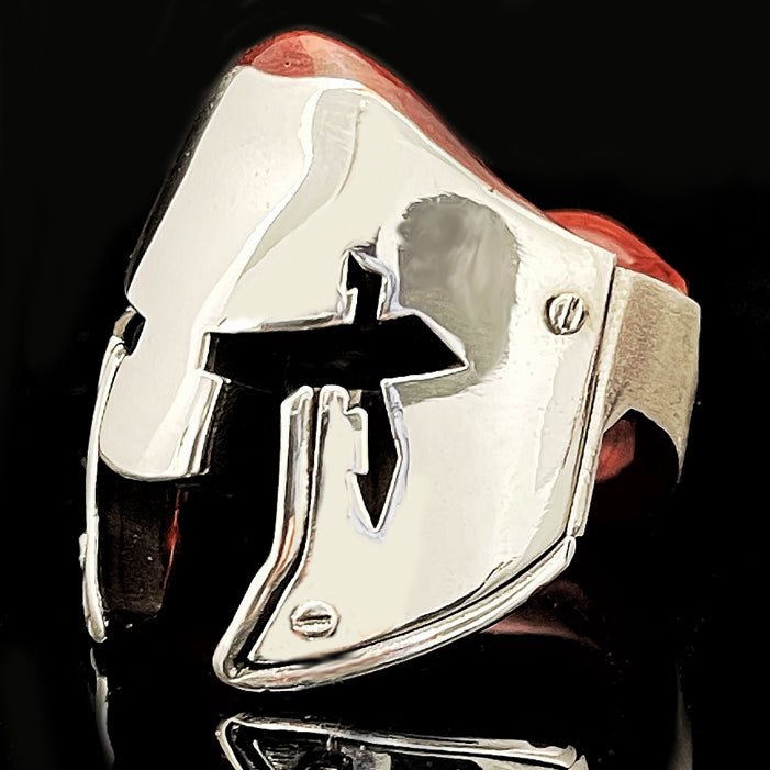 - Disegnato da Giuseppe Donato e ispirato ai guerrieri greci di Sparta, questo anello è simbolo di forza ed è il più versatile della collezione. Il modello "Silver Spartan" è in argento anticato 925% con smalto nero.