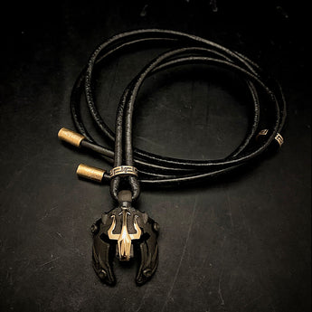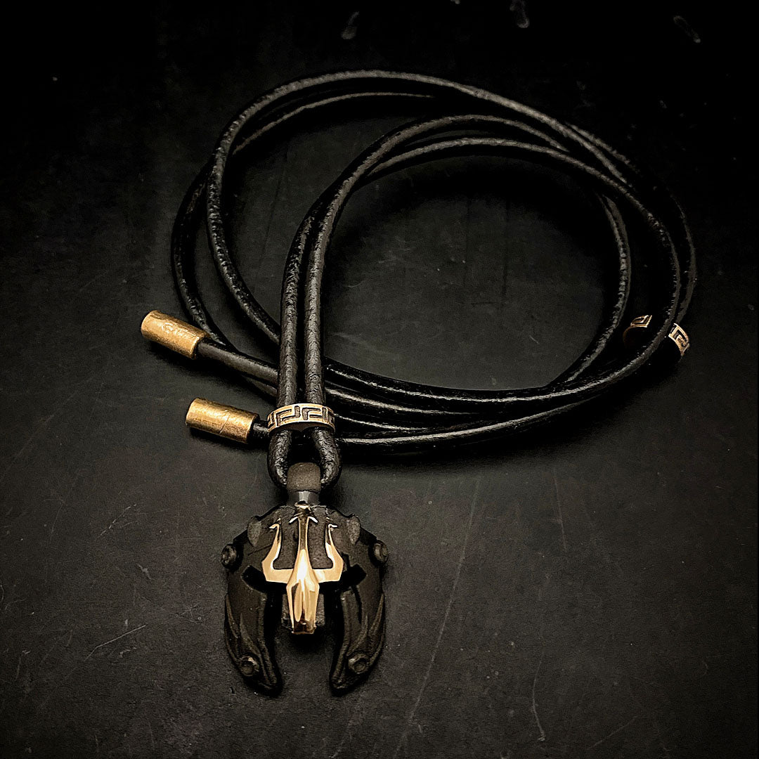 Pendant in Bronze black ruthenium, enamel black, leather.