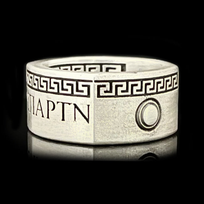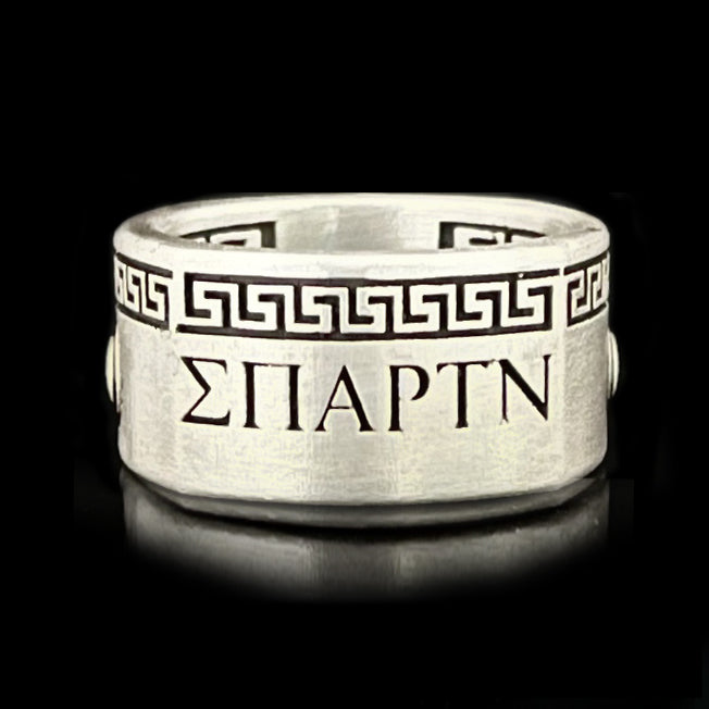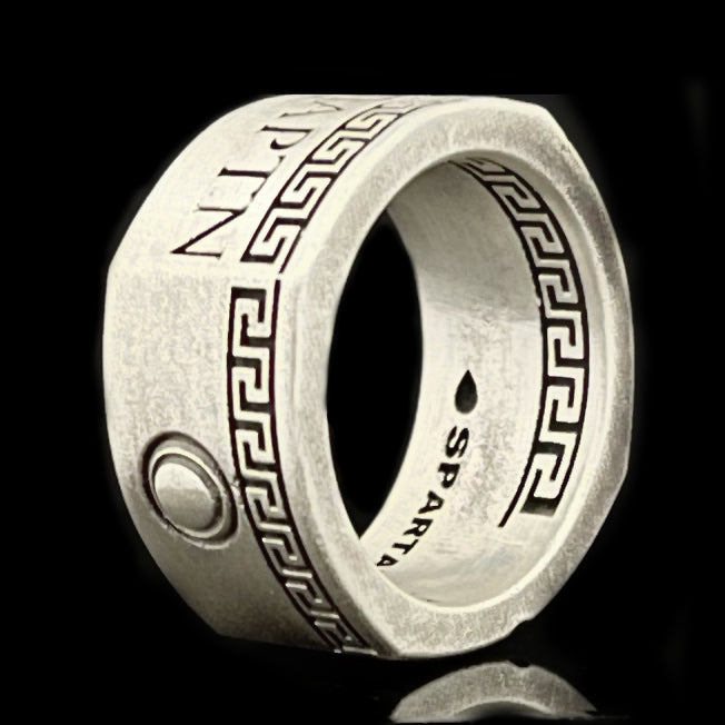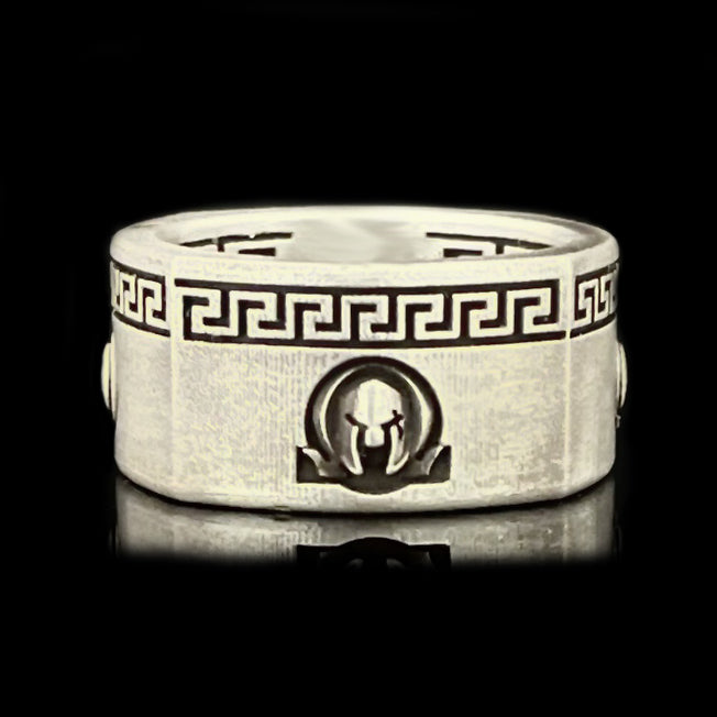 The "Spartan" band in ancient Greek, embossed with Greek script, is the new 925 silver ring that enriches the collection. An elegant and distinctive signature to wear on your finger. Engraved both inside and out with Greek decorations.