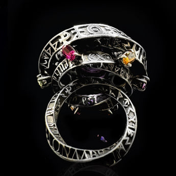 Anello Babel Reliquia è linterpretazione massima della linea, un vero gioiello assoluto in Argento e pietre prezione. ognuno di questi anlli sarà assemblato con preziosi e semi preziosi differenti, in base alle disponibilità e design, ogni anello è unico e numerato. l'arte del designer Donato Giuseppe non si ferma mai e sforna opere indissolubili nel tempo sfidando ogni crisi per regalare arte e bellezza da conquistare.
