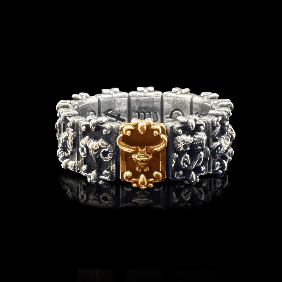 L’anello delle stelle è una fascia scultorea che rappresenta i 12 segni zodiacali, un anello unico al mondo, dalla lavorazione maniacale. L’idea straorinaria è diventata realtà dopo 2 anni di studi, la collezione dello Zodiaco è ormai pronta. L'anello è il portale delle stelle da insossare tutti i giorni, in questa versione Argento 925% antichizzato. In questa versione piu personalizzabile selezioni il tuo segno zodiacale in oro18kt.