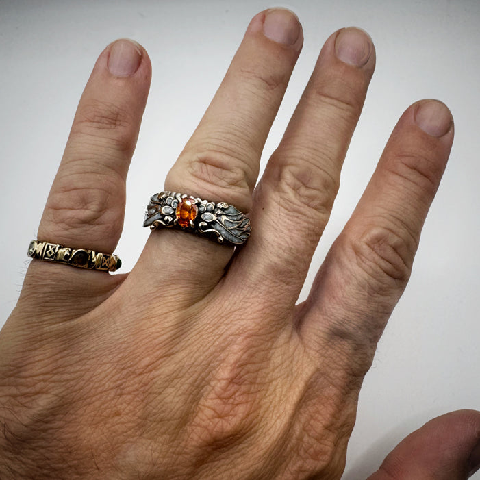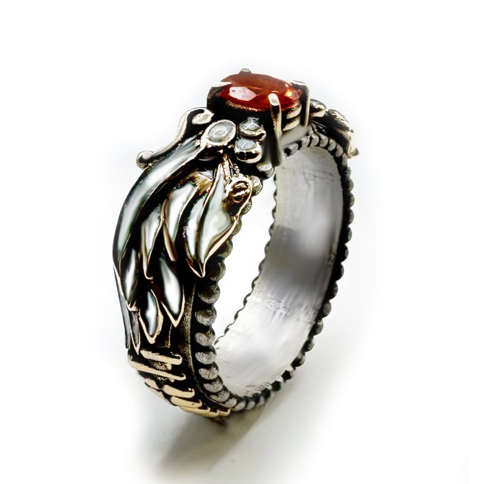 La pietra arancio illumina il gioiello con una tonalità calda e preziosa,
