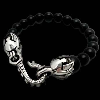 Ogni guerriero portava con se un talismano. I santuari erano soliti a creare veri gioielli in materiali preziosi con pietre naturali dalle proprietà magiche e divinatorie. Guerrieri portavano con se questi manufatti dai mistici poteri. Questo bracciale è forgiato in Argento 925% con 2 elmi "SpartanRing" e il suo gancio. Una lavorazione scultorea in rilievo e sbalzo dai particolari unici.