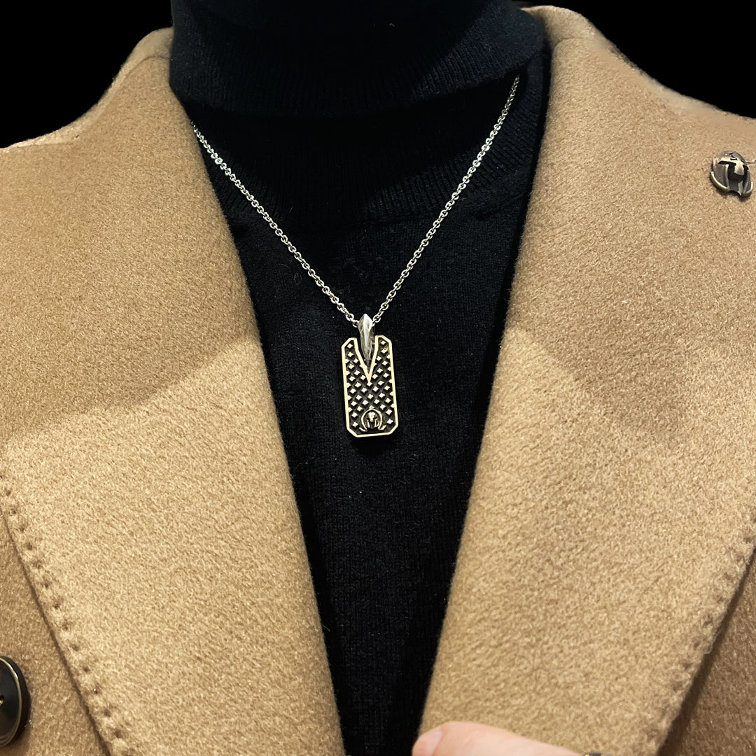 Il ciondolo Piastra Spartana è ciò che ci portiamo con se per ricordarci il messaggio forse più importante, quello devoto ad altri. Il ricordo è la forma più importante per rimanere collegati con il mondo. Personalizza il tuo ciondolo con una scritta a te importante, o lascia la piastra libera per i futuri messaggi che degnamente incideranno su di essa. La lavorazione superiore , completamente testurizzata e logo a sbalzo, renderà una delle collane più iconiche, un must da indossare.